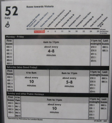 | There is a bus timetable and route map at many of the larger bus stops. |
